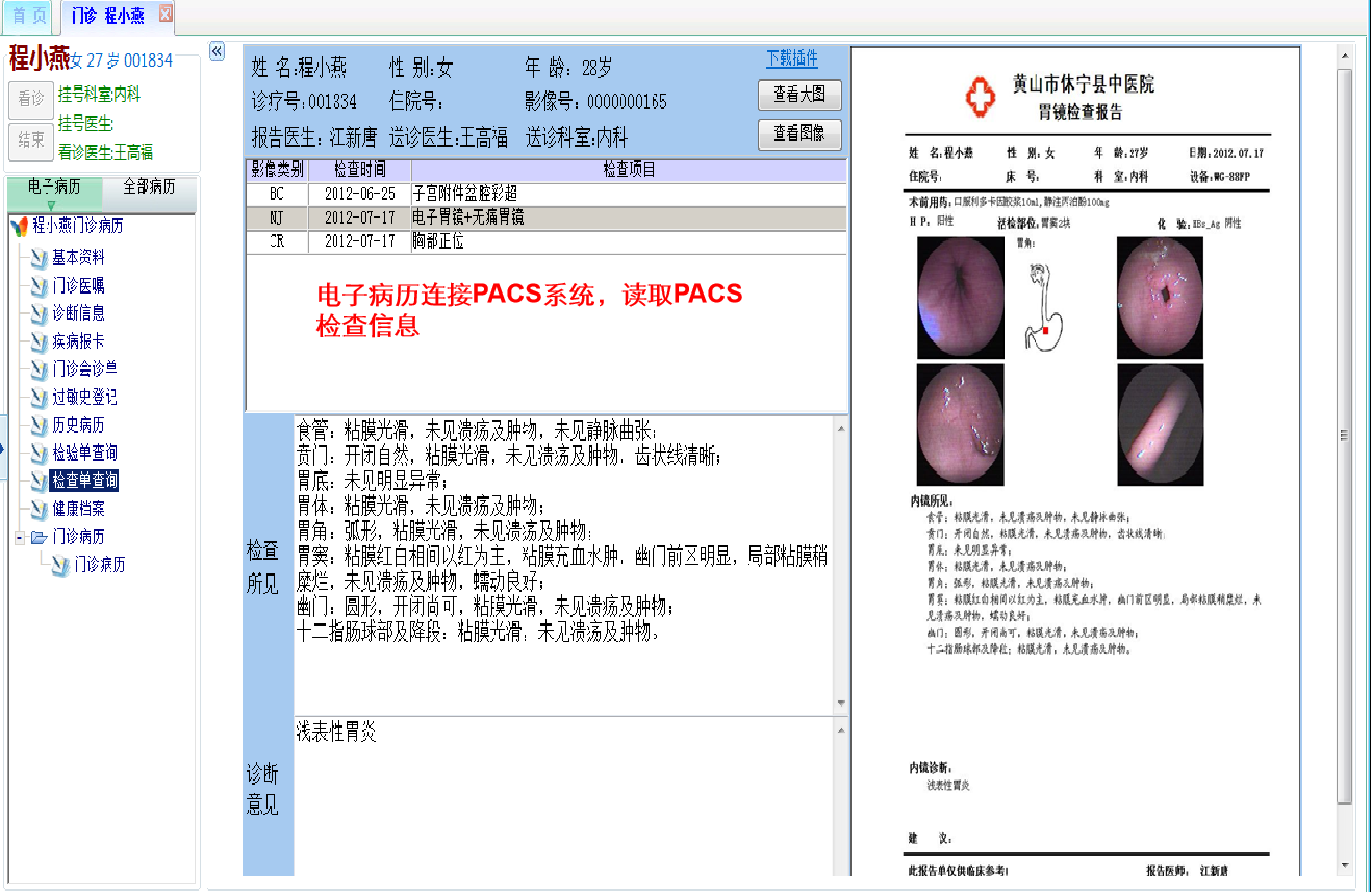 缩短空间距离与传递时间,医生可以在病人完成检查后第一时间获取影像信息和病历资料,即时进行诊断和手术治疗,大大缩短了患者的候诊时间;同时提供全面的、规范的、标准的临床专业词汇,极大地方便了各科室诊断报告的生成,并减少了人工输入出错率,方便编写诊。